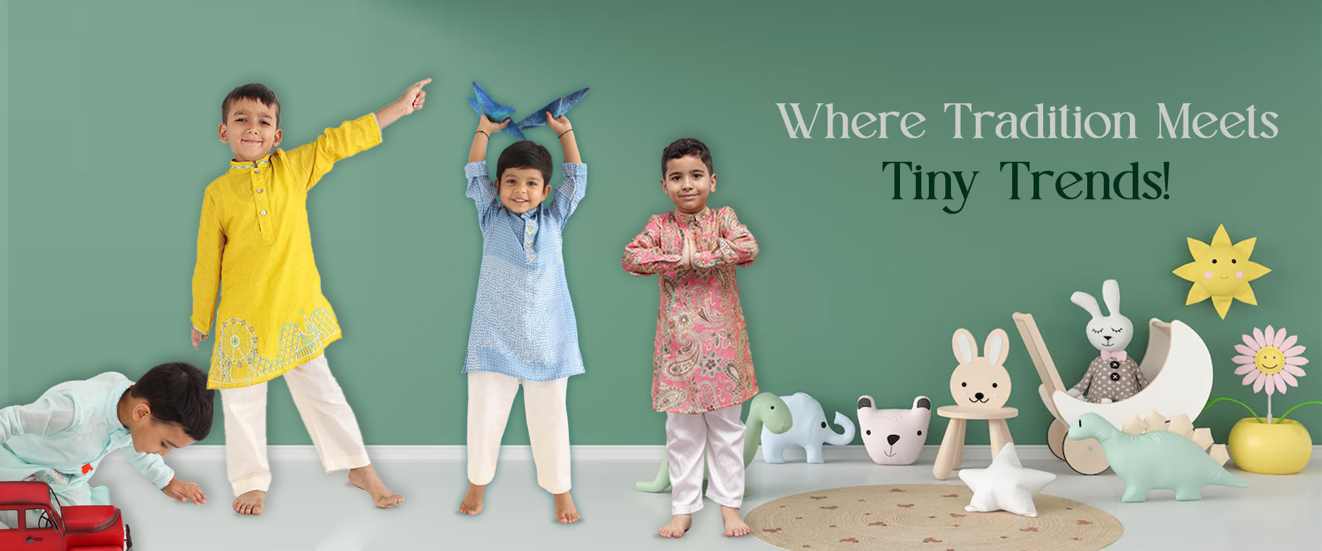 FLORAL PRINTED JACKET WITH KURTA AND WHITE PYJAMA FOR BOYS